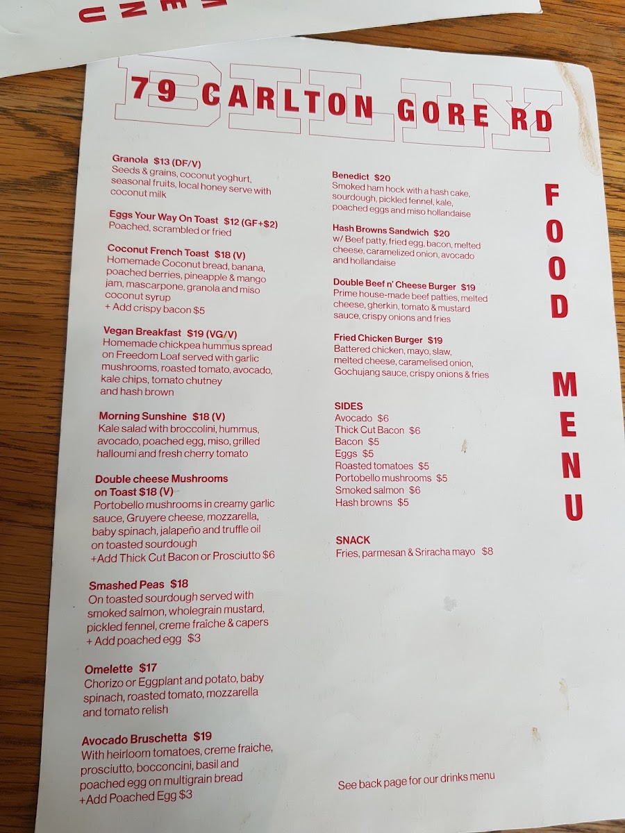 For those who prefer to complement their meal with sides, there are delightful options like Avocado, Streaky Bacon, and Eggs Your Way, along with tasty additions like Waffle Fries and Roasted Tomatoes. If you're in the mood for a snack, Fries with Parmesan & Sriracha Mayo provide the perfect balance of crunch and flavor.